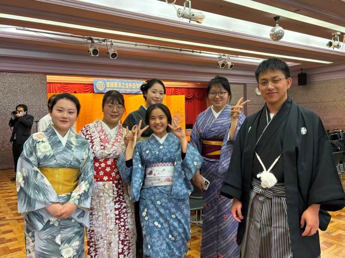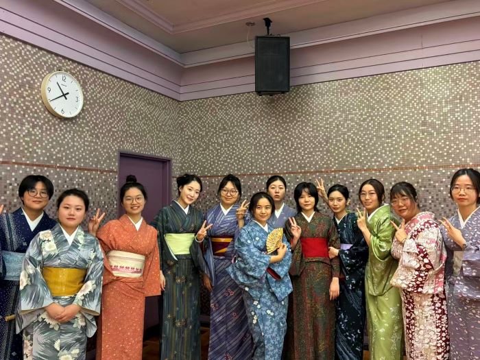 此次活动特别邀请了ハクビ京都和服学院(东京池袋校)的专业老师,为每位同学精心穿戴和服,让大家近距离感受日本传统服饰之美。身着典雅和服,品味香醇抹茶,沉浸在浓厚的日式文化氛围中,同学们拍照留念,记录下这一难忘的瞬间。
