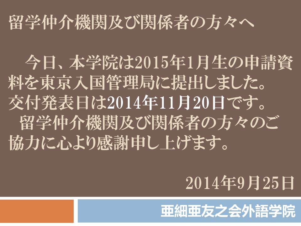 2014/09/25 2015年度1月生の申請資料を提出しました